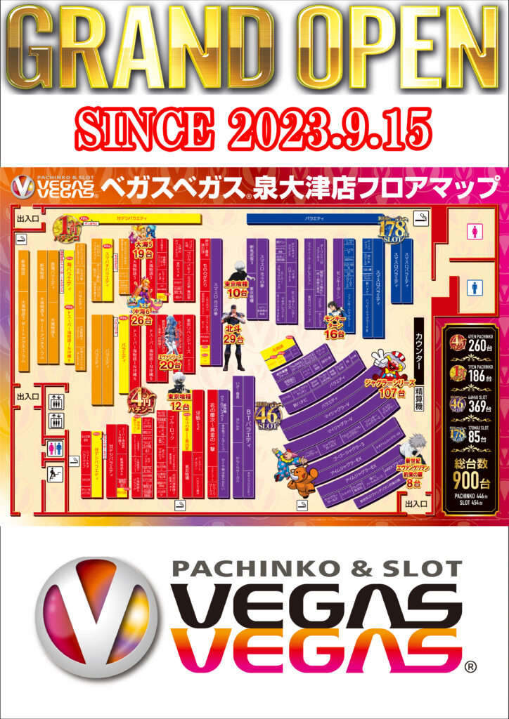 | 台 数 | パチンコ 446台 スロット 454台 |